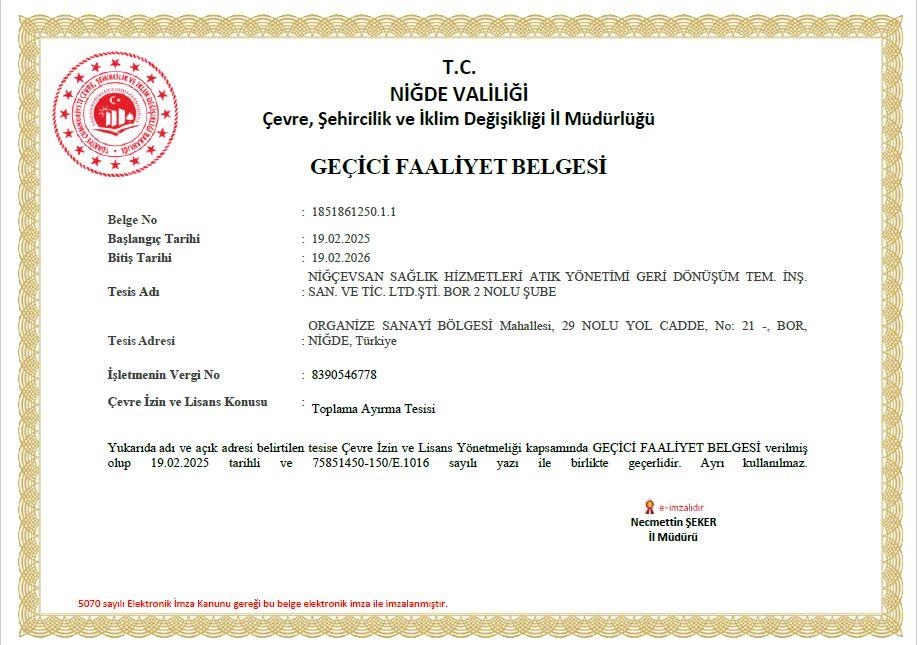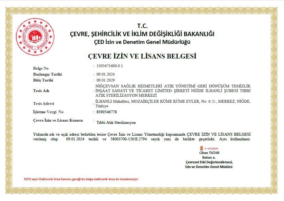 • Niğde Tıbbi Atık Sterilizasyon Tesisi
