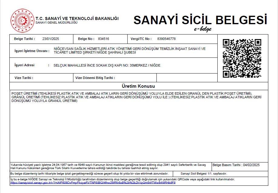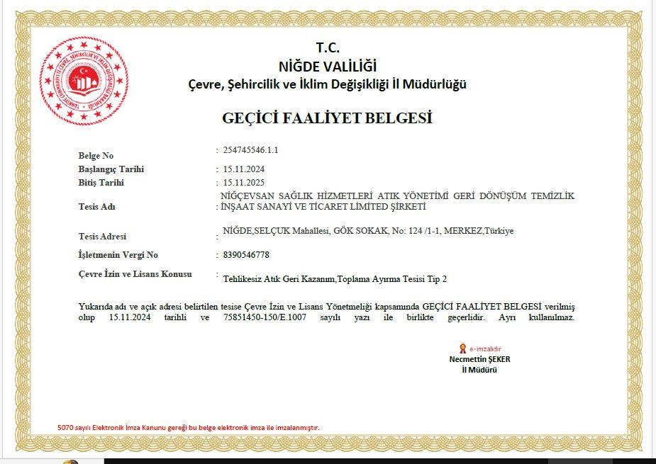 • Niğde Atık Toplama, Ayrıştırma Tesisi